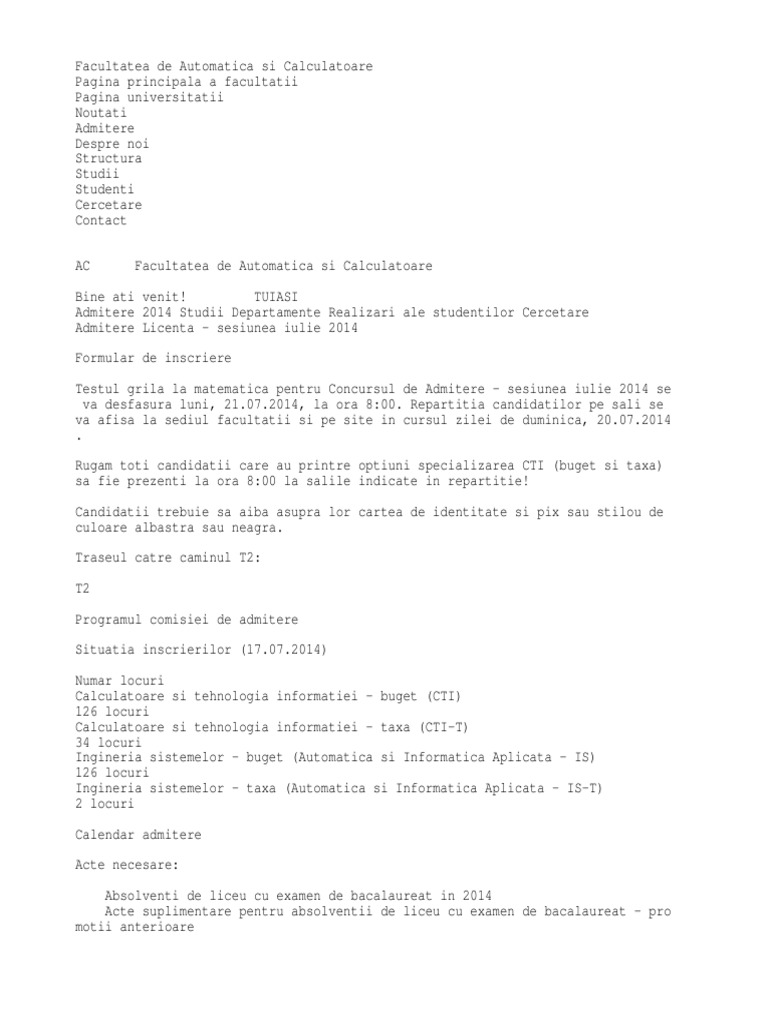untuk "Automatica Si Calculatoare Admitere"