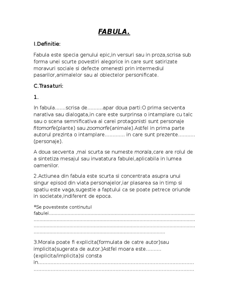 vizitati articolul complet aici : https://line.17qq.com/articles/swsrurquax.html Fabula este opera epica de mica intindere, cu caracter satiric si moralizator, in care intamplarile sunt puse pe seama animalelor, pasarilor sau obiectelor, care intruchipeaza defecte omenesti criticate de autor. See 4 authoritative translations of fabula in english with example sentences, conjugations and audio pronunciations. Cultiva trasaturi distincte curajul, vitejia predilectie pentru speciile: