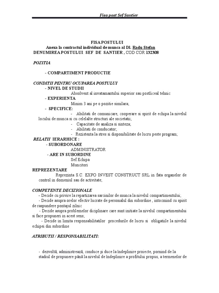 Avem un coleg care are studii medii, facultatea este in curs. Societati comerciale cu activitati in constructii, care doresc sa se extinda prin participarea la licitatii de achizitii publice si persoane care. Astfel, sofer autobuz devine conducator auto transport rutier de persoane si pastreaza acelasi cod 833101 in grupa de bază 8331 soferi de autobuze si tramvaie, iar sofer autocamion/masina de mare tonaj devine conducator auto transport rutier de marfuri ce pastreaza acelasi cod 833201 in grupa de baza 8332 soferi de autocamioane si masini de mare tonaj.