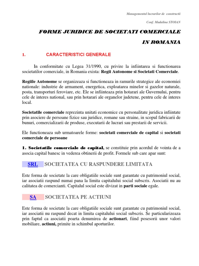 31/1990 de simona petrina gavrila. 31/1990 a fost publicata in monitorul oficial al romaniei, partea i, nr. 31/1990 reglementează conţinutul actului constitutiv al ambelor forme de societate.