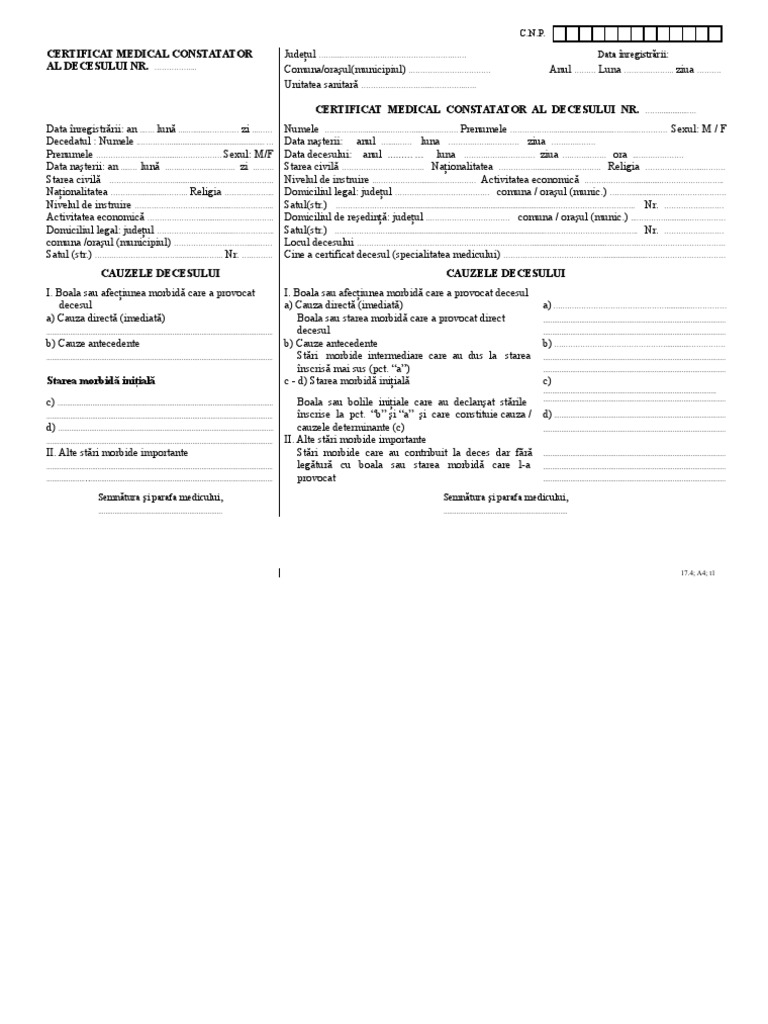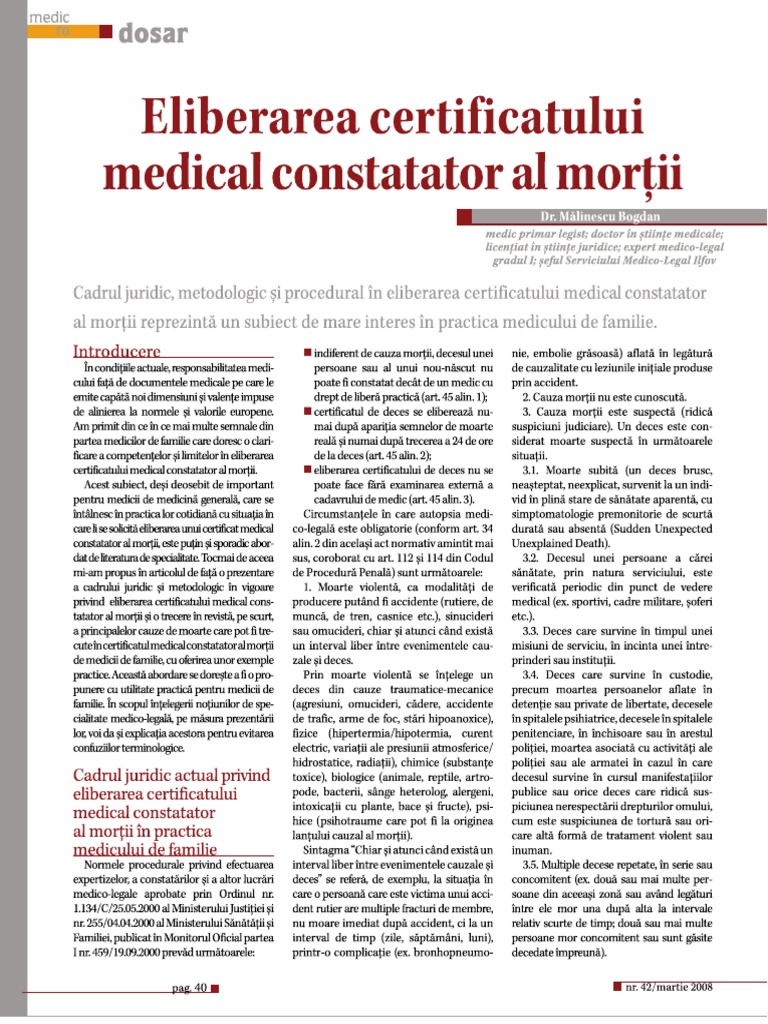 Certificatul medical constatator al decesului. Check spelling or type a new query. We did not find results for: